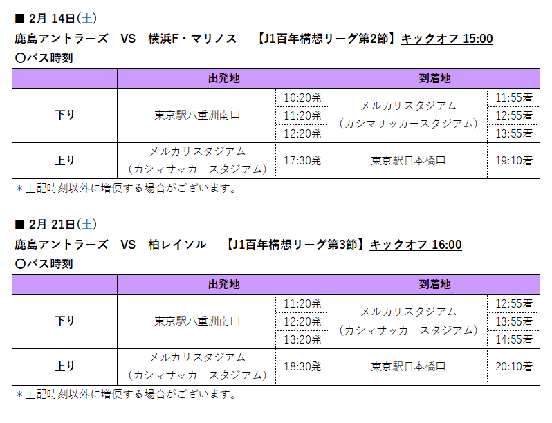 ジェイアールバス関東 HOME > トピックス > 2026年2月【メルカリスタジアム(カシマサッカースタジアム)直行便】の臨時便運行について