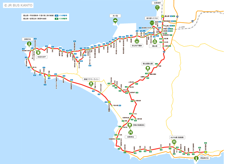 JRバス洲の崎線南房パラダイス行き ファミリーパーク前バス停からすぐ |