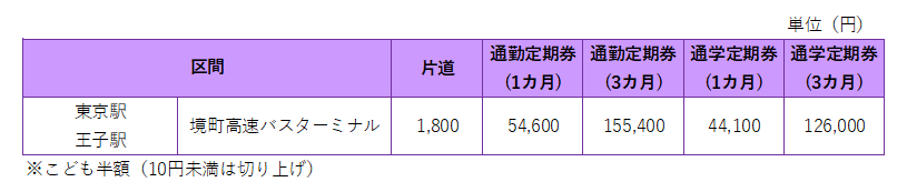 ジェイアールバス関東 HOME > ダイヤ改正・運賃関係 > 【東京駅~境町線】運賃改定を実施します(2026年1月1日ご乗車分より)
