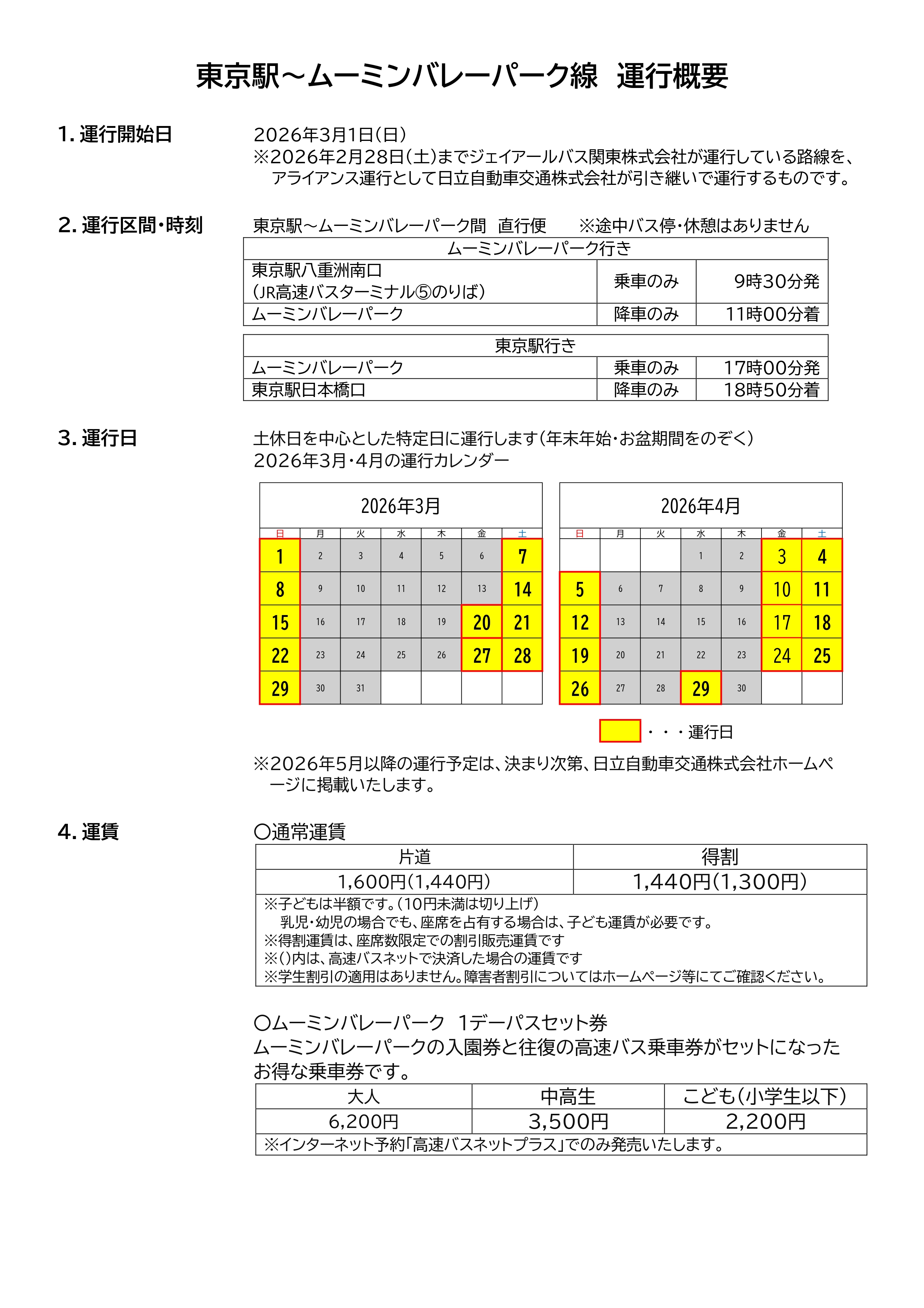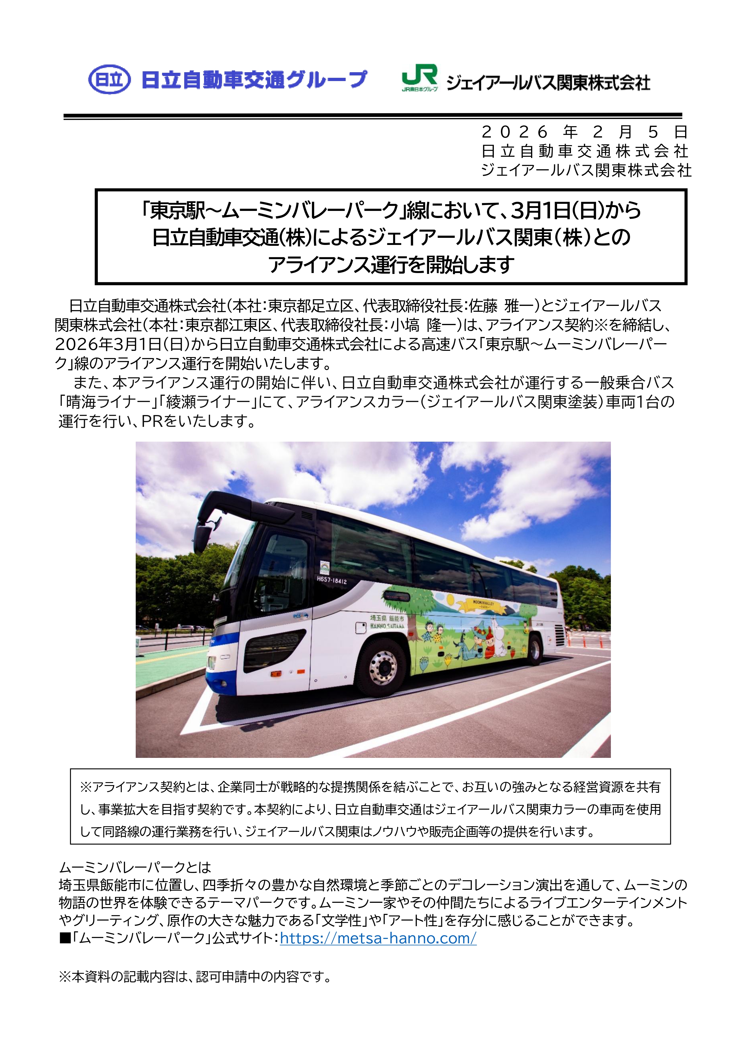 【東京駅~ムーミンバレーパーク線(ムーミンバレーパーク号)】2026年3月1日から日立自動車交通株式会社によるアライアンス運行となります!