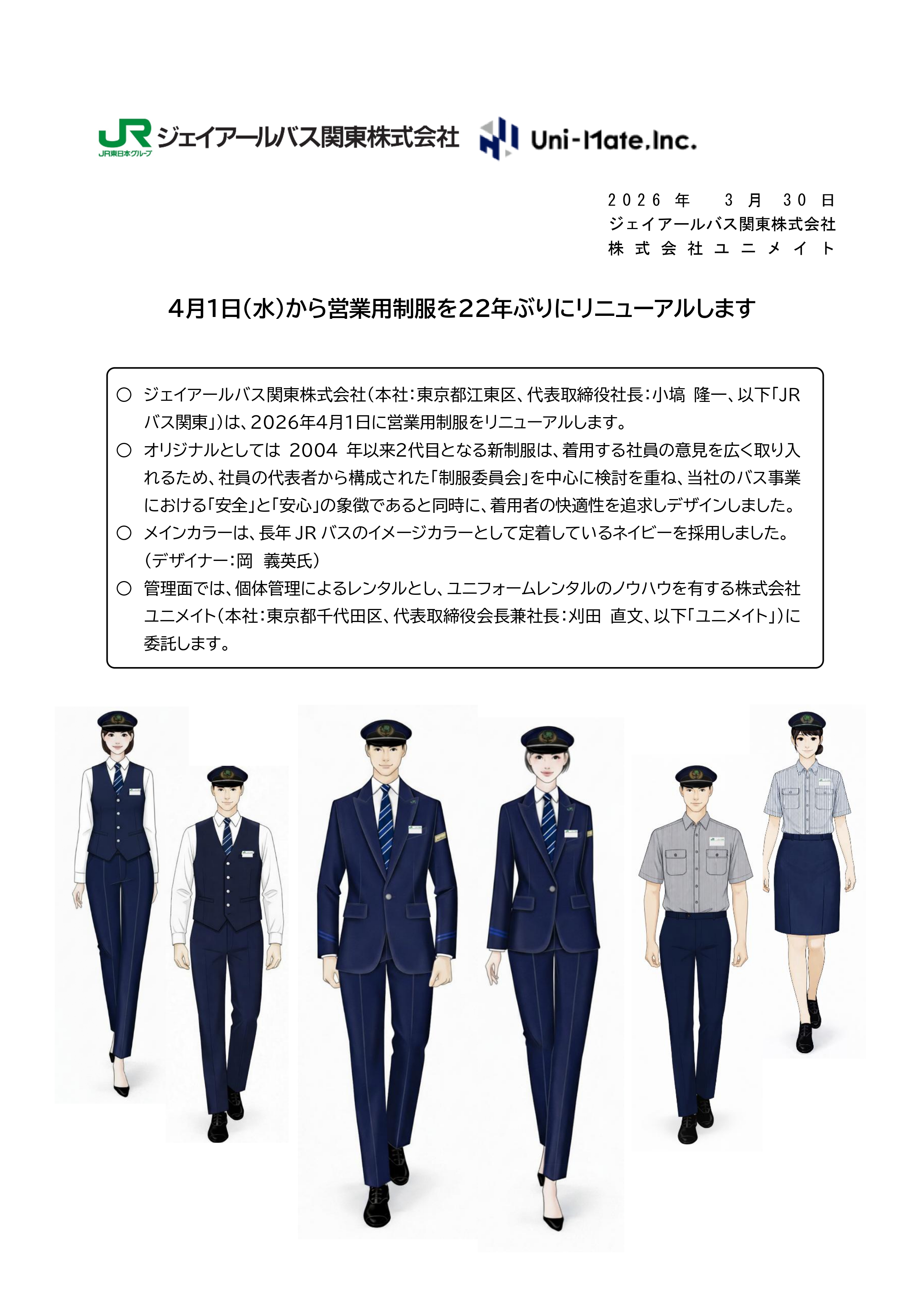 ジェイアールバス関東 HOME > その他 > 2026年4月1日(水)から営業用制服を22年ぶりにリニューアルします!
