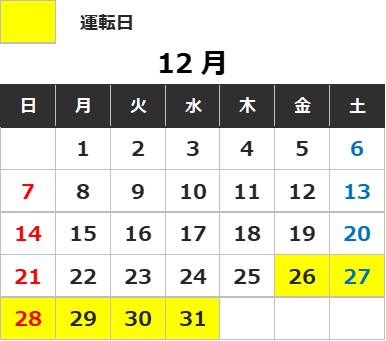 運賃カレンダーはこちら